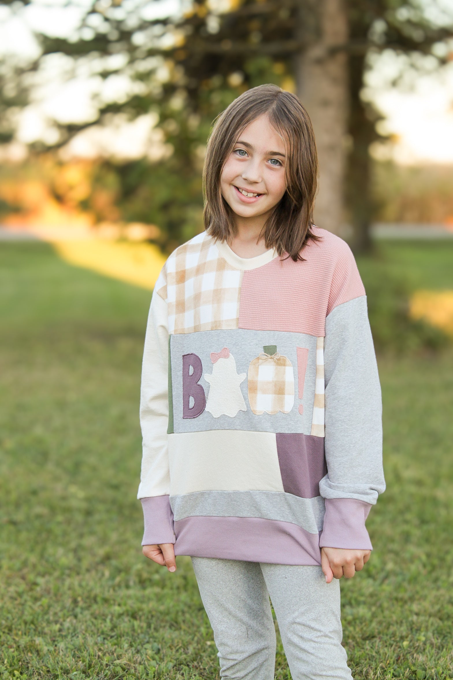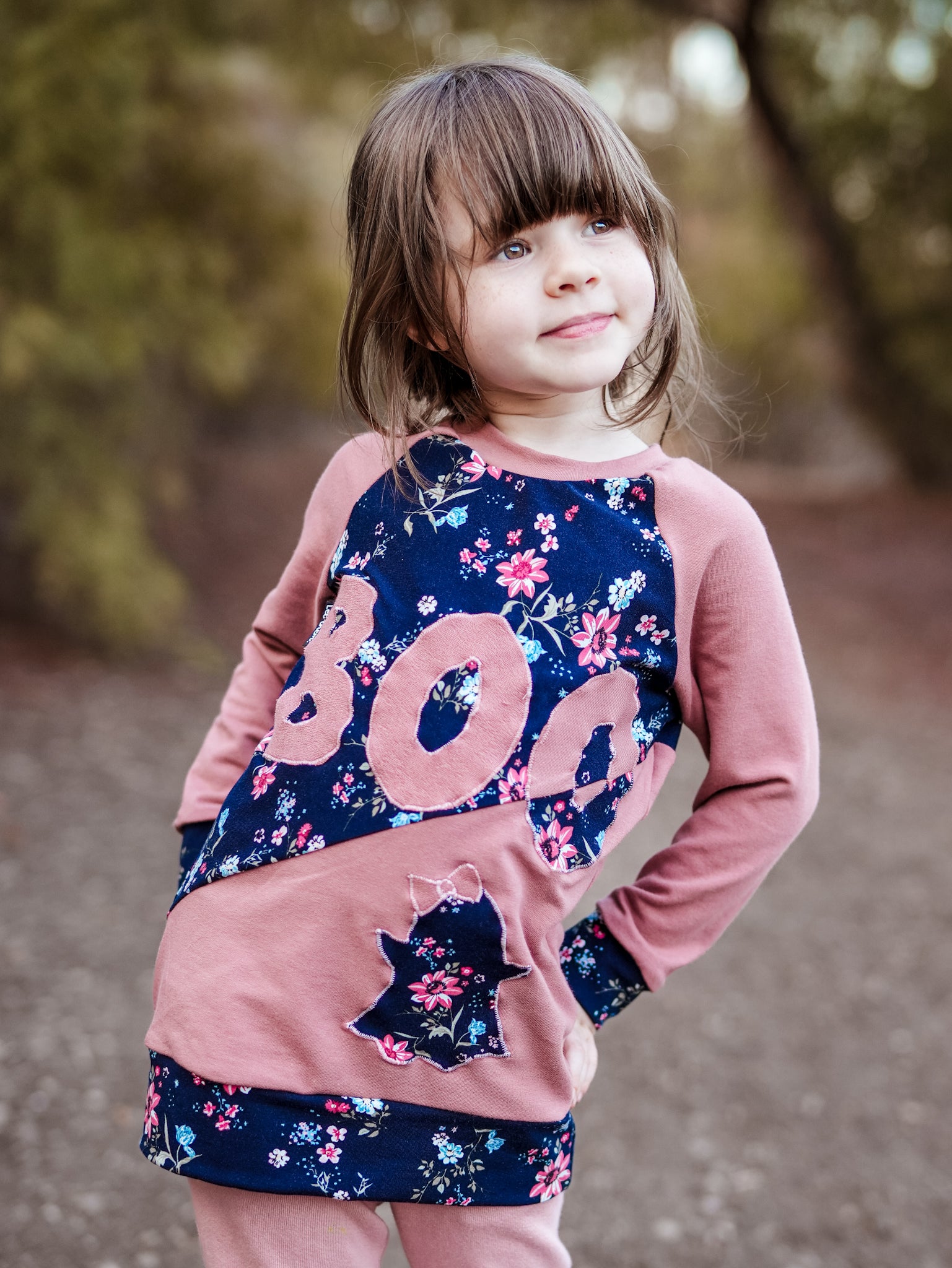 This playful Halloween appliqué pack includes bold BOO letters, three different ghost designs, and a pumpkin +Bow —perfect for decorating handmade clothing, trick-or-treat bags, home décor, and more. Designed with both knit and woven fabrics in mind, the pieces are easy to cut by hand or with a cutting machine, and simple to sew onto your projects.