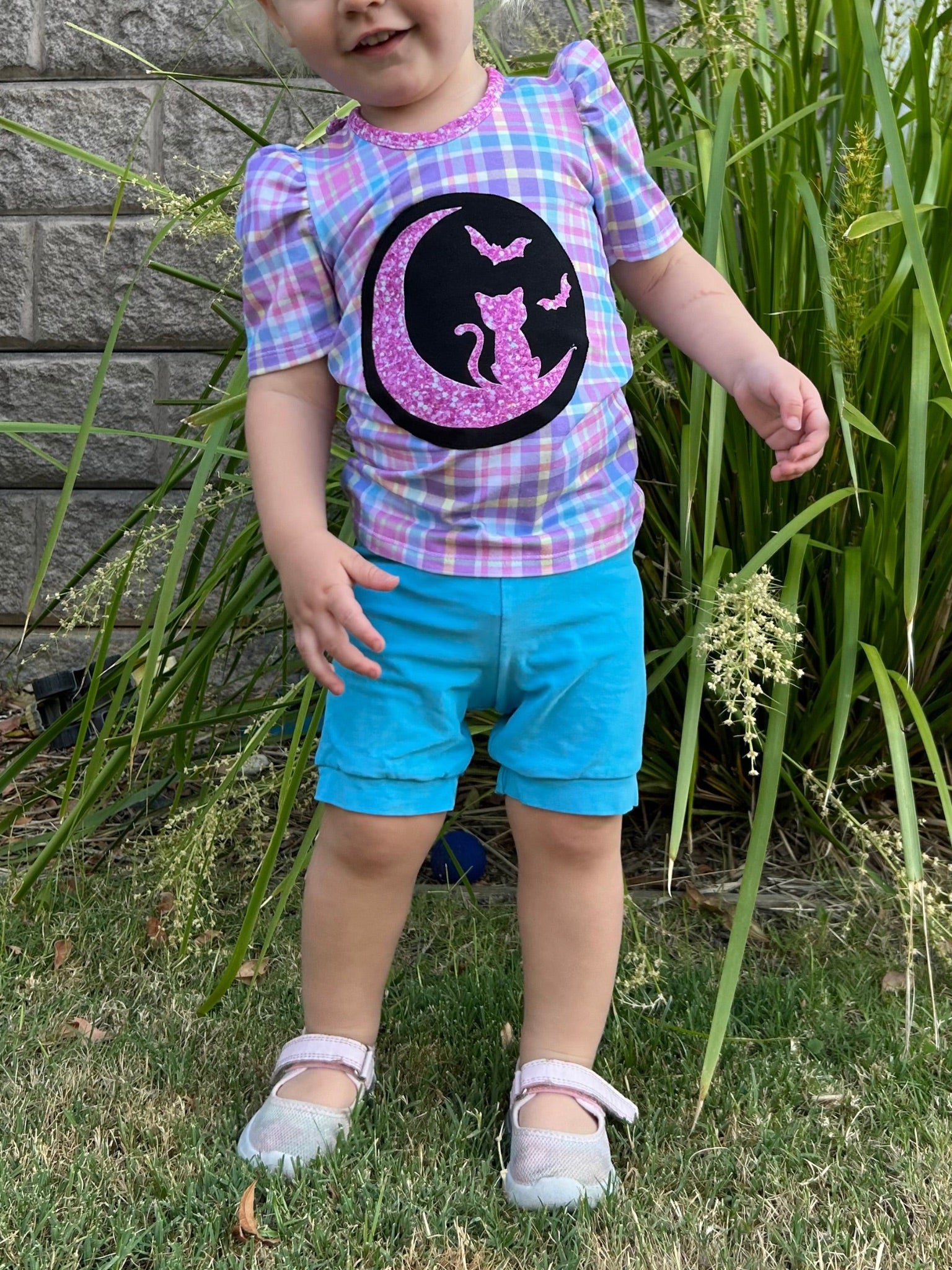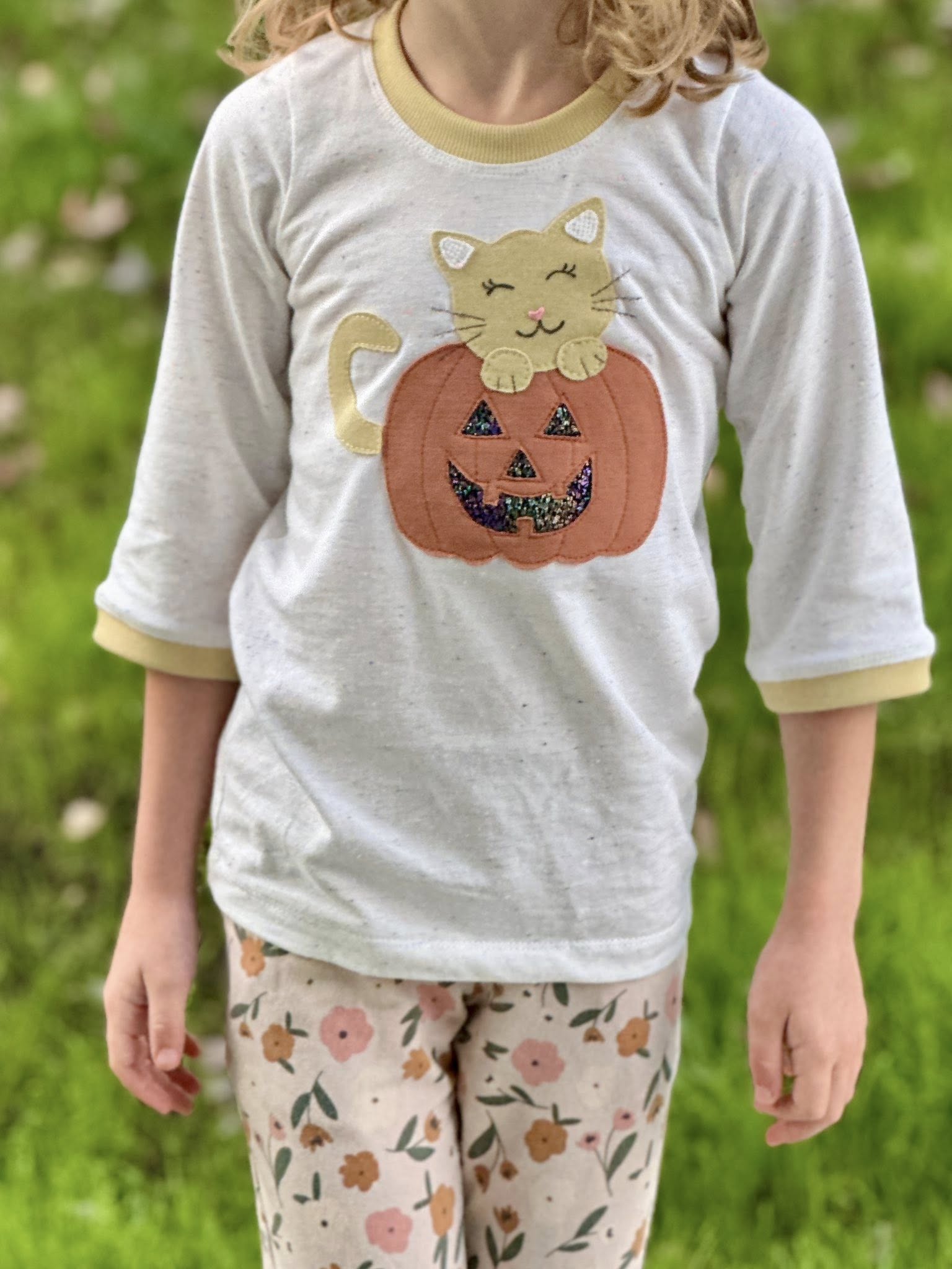 This charming Halloween appliqué pack includes four unique designs: a cat in a Jack-o’-Lantern, a pumpkin with stem option, a cat sitting on the moon, and a cat silhouette. Perfect for adding a magical Halloween touch to clothing, trick-or-treat bags, quilts, wall hangings, and more. Designed for both knit and woven fabrics, these appliqués are easy to cut by hand or with a cutting machine, and simple to sew onto your project.