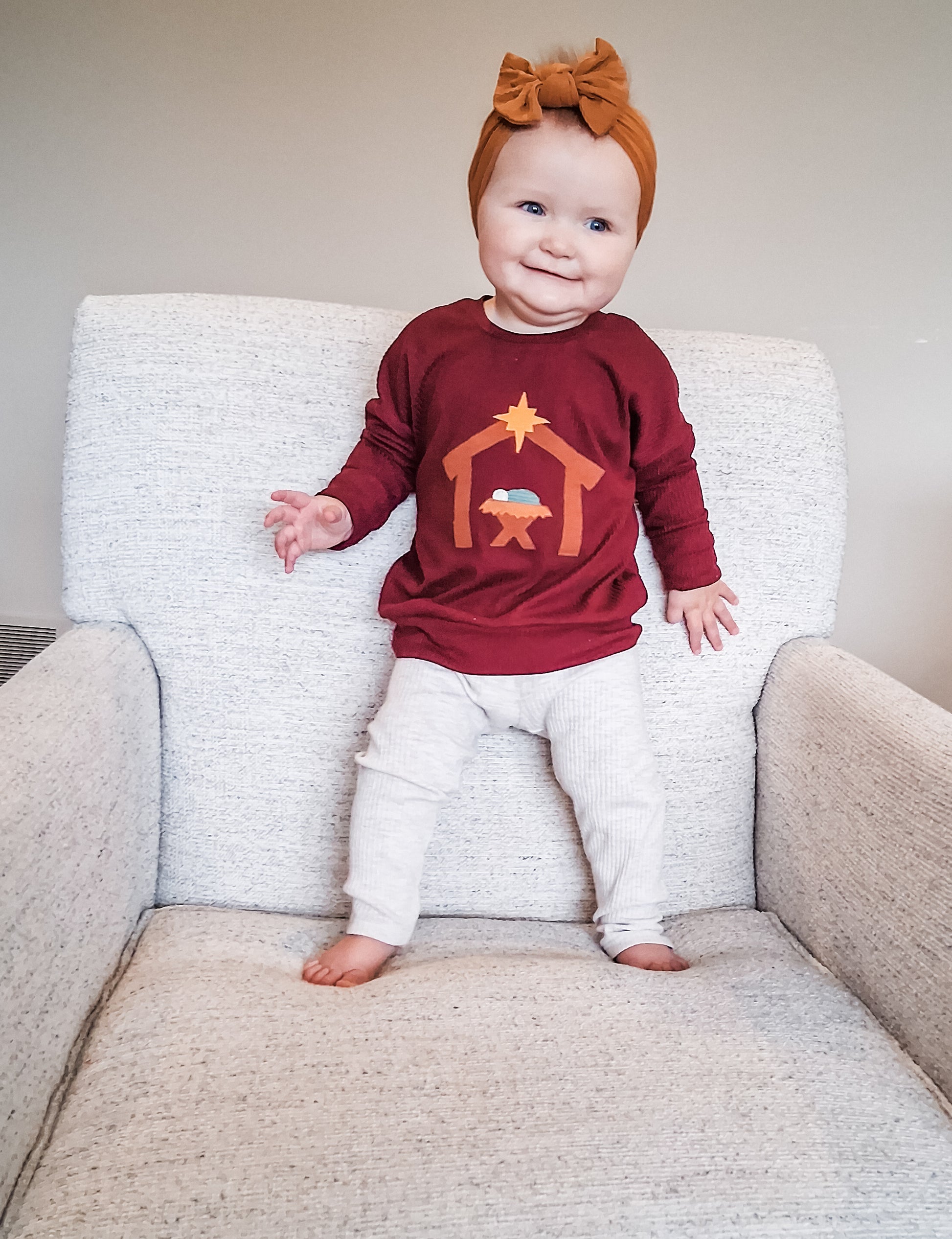 This timeless collection combines faith and festivity with a beautifully simple nativity scene — featuring the stable, shining star, manger with hay, and baby Jesus — along with a coordinating cross adorned with a bow, and classic holly berry details for a touch of holiday cheer.
